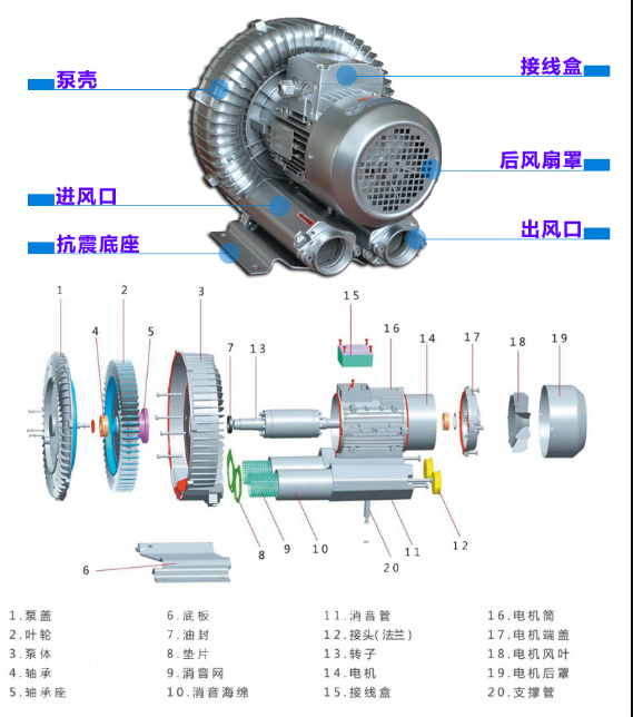 1、當(dāng)氣泵噪音變大時(shí),檢查全空氣渦流氣泵泵體內(nèi)是否有雜物。如有,打開風(fēng)機(jī)外殼,清除內(nèi)部雜物;檢查葉輪是否卡滯,重新組裝,排除故障。然后檢查軸承是否損壞。如有必要,可能需要更換軸承。