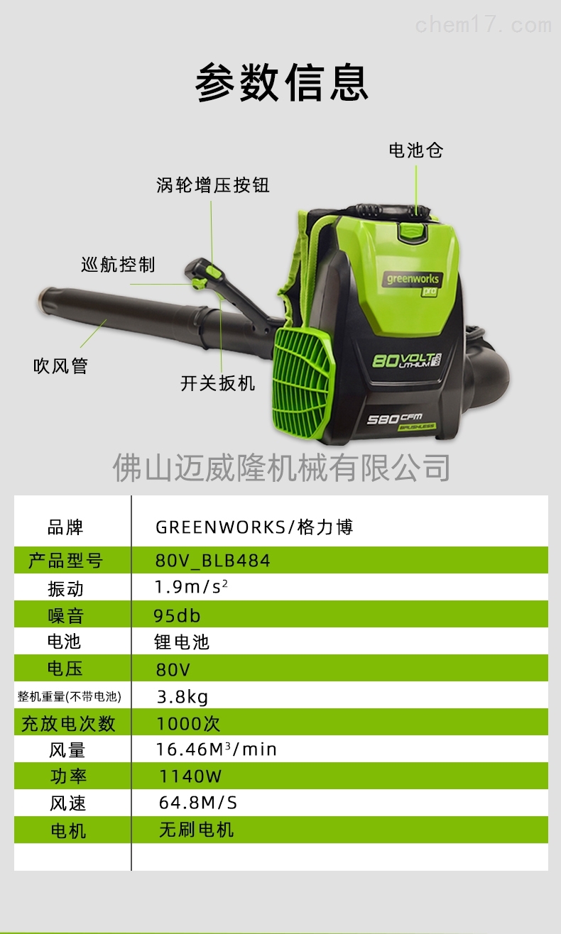 Glebe 80V blb484背包式吹風(fēng)機(jī)產(chǎn)品參數(shù):品牌:greenworks/Glebe產(chǎn)品型號(hào):80V_blb484振動(dòng):1.9m/S2噪音:95dB電池:鋰電池電壓:80V機(jī)器重量(無電池):3.8kg充放電次數(shù):1000倍風(fēng)量:16.46m3/min功率:1140w風(fēng)速:64.8m/s電機(jī):無刷電機(jī)