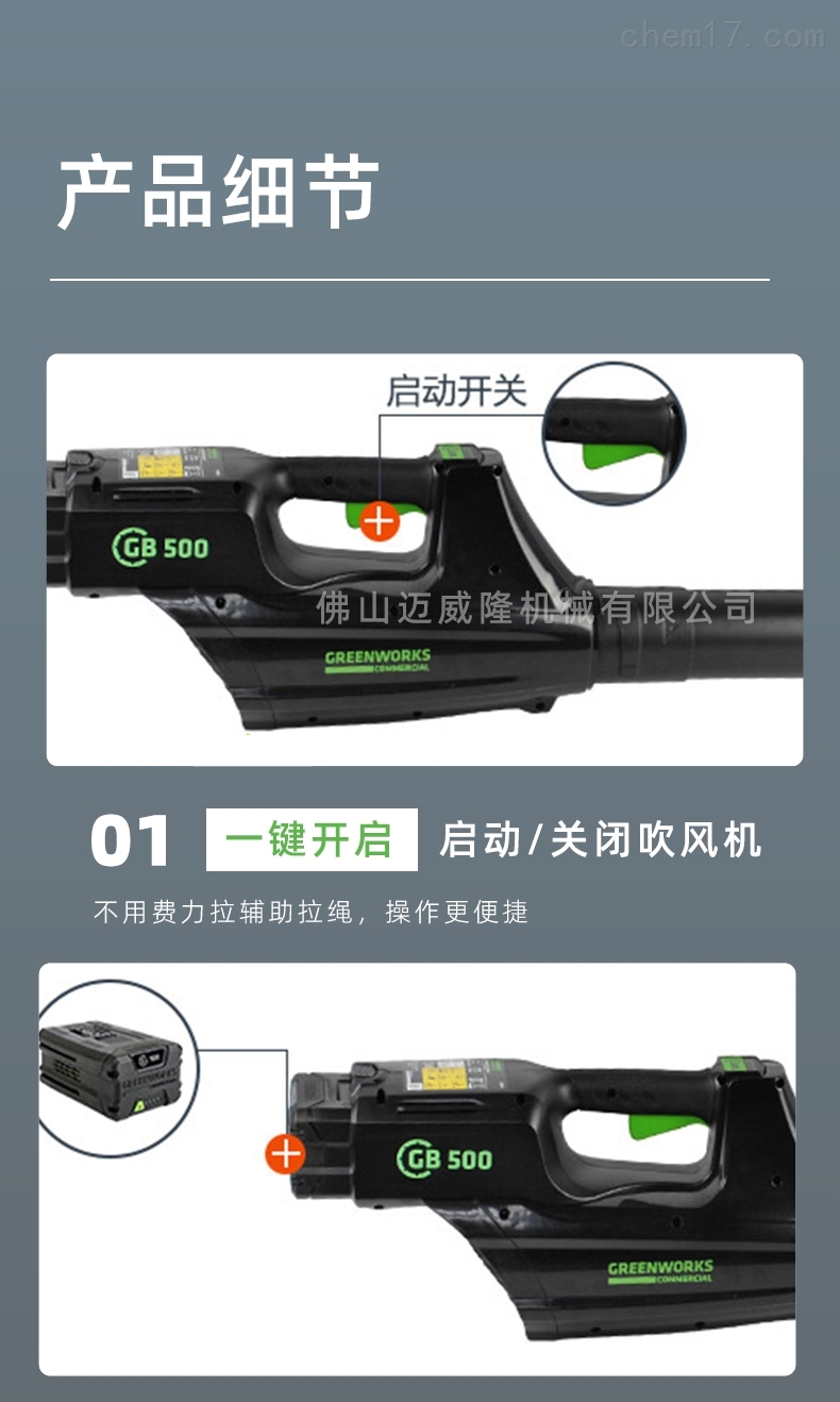 產(chǎn)品詳細(xì)信息:一鍵啟動(dòng)/關(guān)閉吹風(fēng)機(jī),無(wú)需用力拉動(dòng)輔助拉繩,操作更方便;82v鋰電池:大功率,鋰電池,重量輕,壽命長(zhǎng);風(fēng)管:吹風(fēng)管,材質(zhì)好,硬度高。